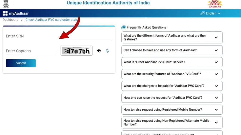 - You will be able to see the current status of your Aadhaar PVC Card, such as: