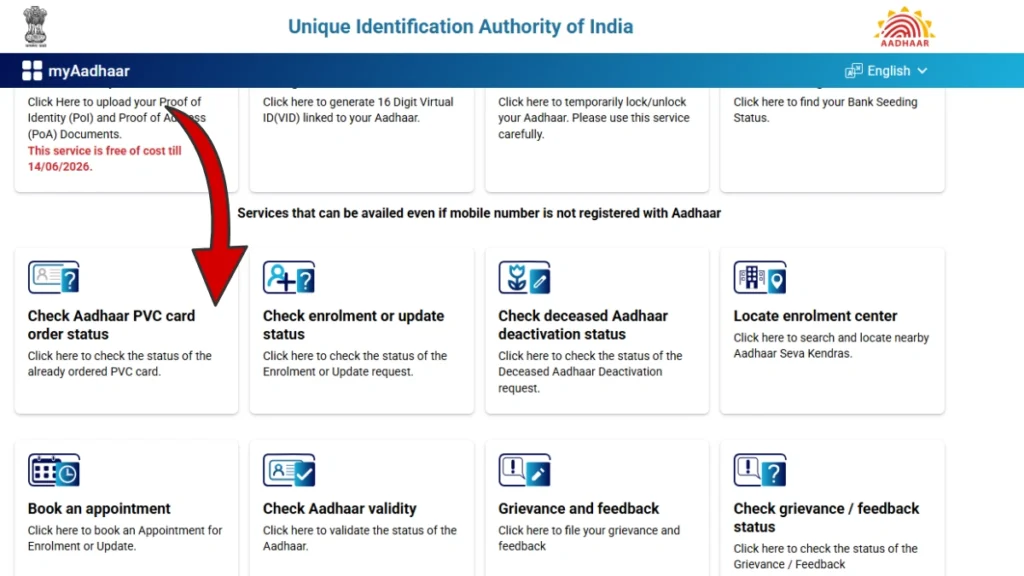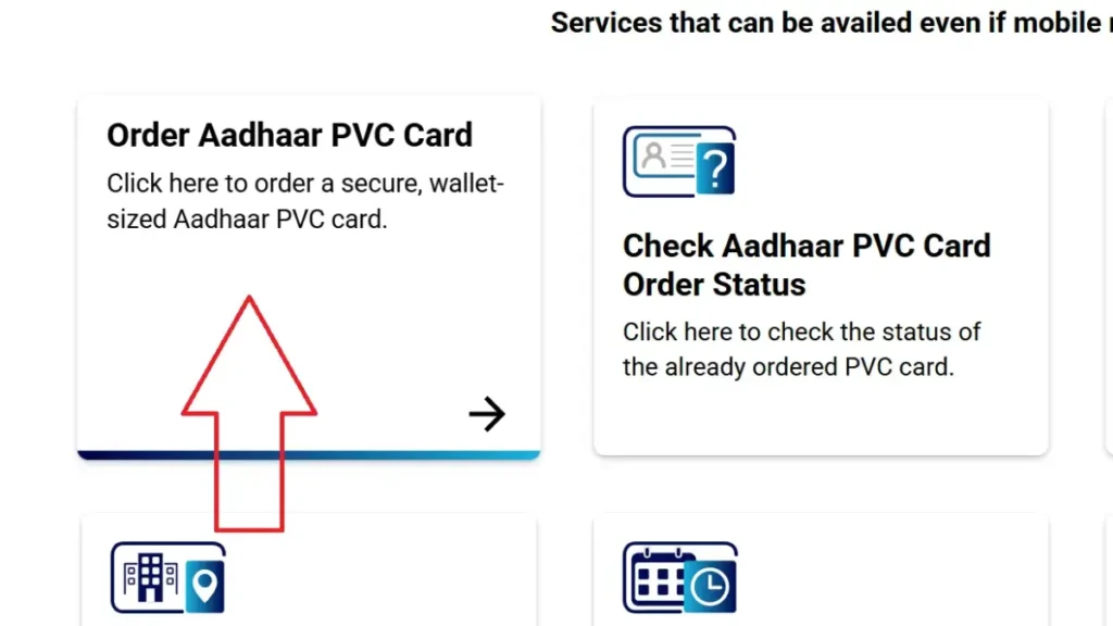 - Aadhaar PVC Card Service: Order a durable, wallet-size Aadhaar PVC Card online, delivered securely to your registered address.
