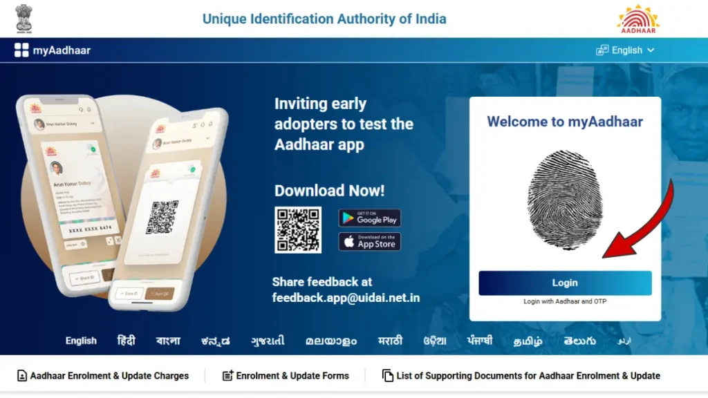 - Open My Aadhaar Login Page: Visit the official My Aadhaar portal,
