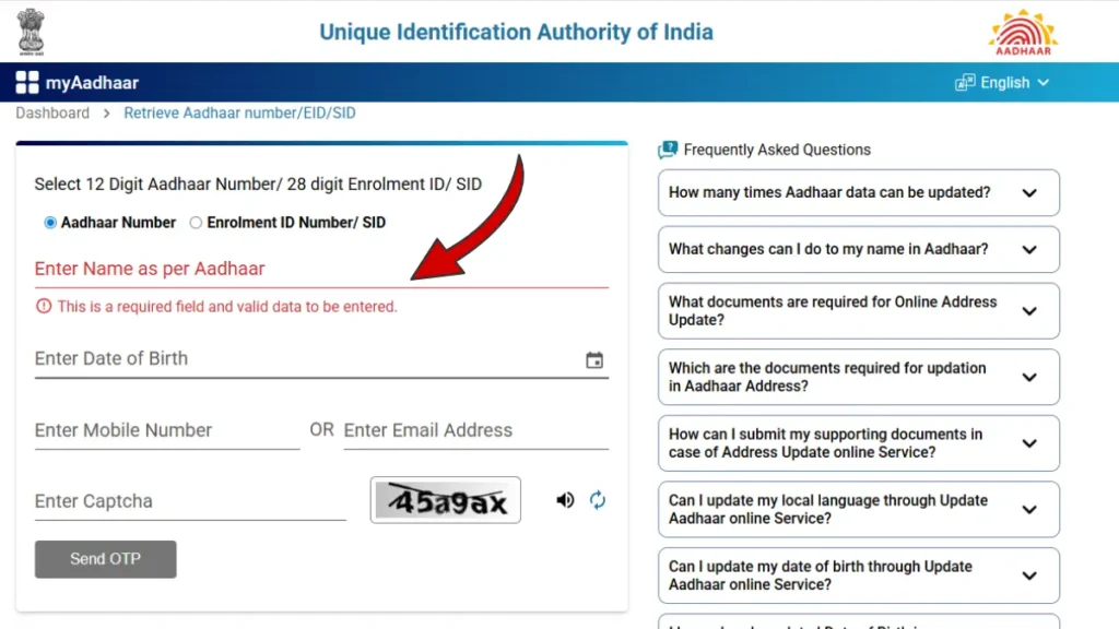 - Steps to Retrieve Aadhaar Number or EID